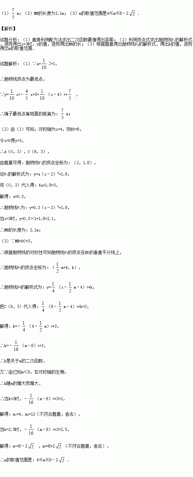 (2)因实际需要,在离AB为3米的位置处用一根立柱MN撑起绳子(如图2),使左边抛物线F1的最低点距MN为1米,离地面1.8米,求MN的长;