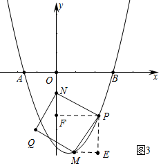 ②如图3中,当四边形PMQN是正方形时,作PF⊥y轴于N,ME∥x轴,PE∥y轴.![]()