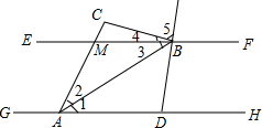 如图,已知EF∥GH,A、D为GH上的两点,M、B为EF上的两点,延长AM于点C,AB平分∠DAC,直线DB平分∠FBC,若∠ACB=100°,则∠DBA的度数为