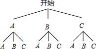 解答:解:(1)∵世纪影城同时放映三部不同的电影,分别记为A、B、C,