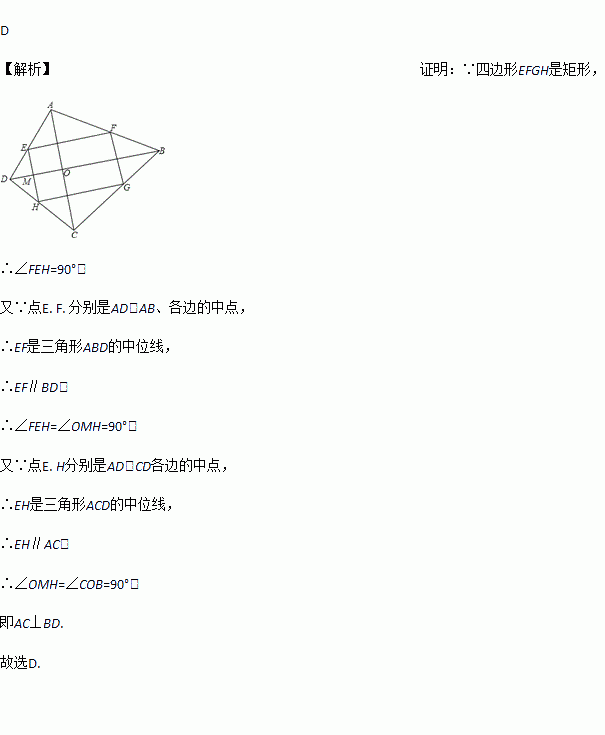 若顺次连结四边形ABCD各边中点所得四边形是矩形,则原四边形必定是( )
