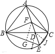 分析 (1)作辅助线,构建垂线,根据等边对等角得:∠ABC=∠ACB,由同弧所对的圆周角相等得:AE为∠BEC的角平分线,由角平分线的性质得:DI=DJ,FG=FC,根据面积的关系和BD=2DC得BE=2CE,证明Rt△GEF≌Rt△CEF,可知FG垂直平分BE,从而得△FBE为等腰三角形,有∠AFB=∠BEC,根据两角相等证得结论;