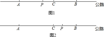 如图,A、B、C是一条公路上的三个村庄,A、B间的路程为50km,A、C间的路程为30km,现要在A、B之间建一个车站P,设P、C间的路程为xkm.