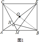 ③首先连接BC,判断出BH=OE=$\frac{1}{2}$BC;然后根据BM2=MH•MC,判断出△BMH∽△CMB,即可判断出MB=2MH,据此推得∠HAM=30°,∠ACH=30°,AH=$\frac{\sqrt{3}}{2}AM$,AC=$\frac{\sqrt{3}}{2}AB$,所以$\frac{AC}{AB}$=$\frac{{\sqrt{3}}}{2}$;最后根据OE=OC,可得∠CEO=∠ECO,据此求出tan∠CEO的值是多少即可.