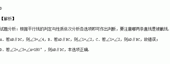 D.若∠2+∠3+∠A=180°,则AB∥DC