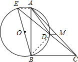 分析:如图,连接AE、BD.利用圆周角定理得到∠BED=∠BAD,则结合已知条件判定BE=BC,所以由“三线合一”的性质判定D点是EC的中点,则DM是△AEC的中位线,所以DM=