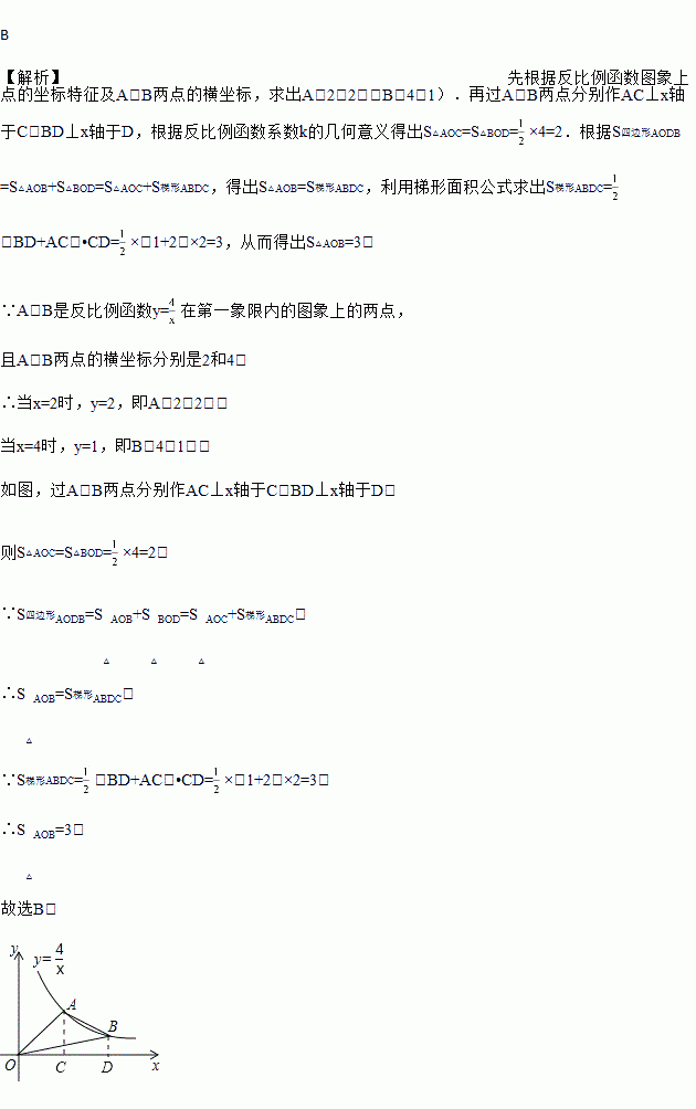 在第一象限内的图象上的两点,且A,B两点的横坐标分别是2和4,则△OAB的面积是( )