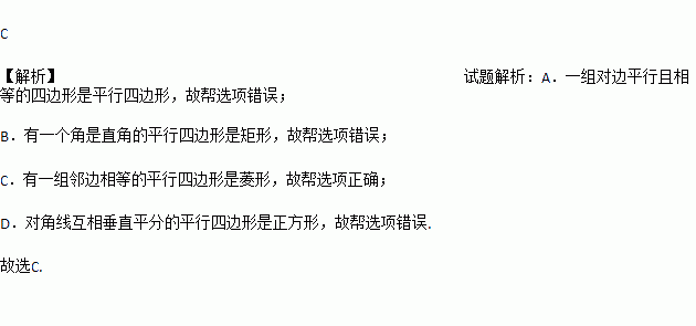 C. 有一组邻边相等的平行四边形是菱形