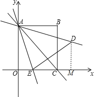 (2)过D点作DM⊥x轴于点M,先通过三角形全等求得EM=AO=3,DM=OE,设E(m,0),则OM=OE+EM=m+3,DM=OE=m,把D(m+3,m)代入直线AD的解析式,求得m的值,从而得出D、E的坐标,最后根据待定系数法即可求得.