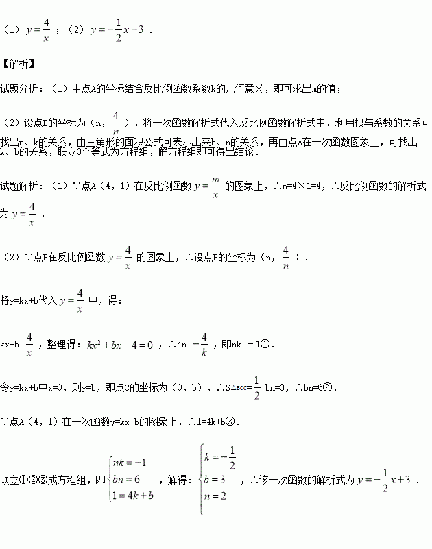 的图象相交于A、B两点,一次函数的图象与y轴相交于点C,已知点A(4,1)