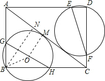 分析 如图,设GH的中点为O,过O点作OM⊥AC,过B点作BN⊥AC,垂足分别为M、N,根据∠B=90°可知,点O为过B点的圆的圆心,OM为⊙O的半径,BO+OM为直径,可知BO+OM≥BN,故当BN为直径时,直径的值最小,即直径GH也最小,同理可得EF的最小值.