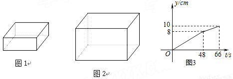 将一块a×b×c的长方体铁块(如图1所示,a<b<c,单位:cm)放入一长方体(如图2所示)水槽中,并以速度20cm3/s匀速向水槽注水,直至注满为止.若将铁块a×c面放至水槽的底面,则注水全过程中水槽的水深y(cm)与注水时间t(s)的函数图象如图3所示(水槽各面的厚度忽略不计).已知a为5cm.