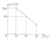 销售草莓,草莓成本为每千克10元,她发现当销售单价为每千克至少10元,但不高于每千克20元时,销售量y(千克)与销售单价x(元)的函数图象如图所示: