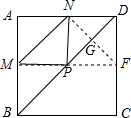分析:根据题得出要使△MNP的周长最小,只要MP+NP最小即可,过N作NG⊥BD交BD于G,交CD于F,连接MF交BD于P,根据正方形性质求出NG=DG=FG,得出N、F关于BD对称,求出MP+NP=MP+PF=MF,得出此时的PN+PM的值最小,得出四边形AMFD是平行四边形,求出MF=AD=2,即可求出MP+NP的值.