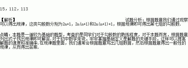 …观察以上各组勾股数组成特点,第7组勾股数是______________(只填数,不填等式)