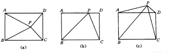 (3)探索若点P在长方形ABCD外(如图c)时,结论是否仍然成立.若成立请证明,不成立请说明理由。