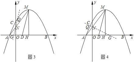 +c与x轴交于A、B两点(点A在点B的左侧),交y轴的正半轴于点C,其顶点为M,MH⊥x轴于点H,MA交y轴于点N,sin∠MOH=