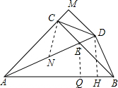分析 过E作EQ⊥AB于Q,作∠ACN=∠BCD,交AD于N,过D作DH⊥AB于H,根据角平分线性质求出CE=EQ,DM=DH,根据勾股定理求出AC=AQ,AM=AH,根据等腰三角形的性质和判定求出BQ=QE,即可求出①;根据三角形外角性质求出∠CND=45°,证△ACN≌△BCD,推出CD=CN,即可求出②④;证△DCM≌△DBH,得到CM=BH,AM=AH,即可求出⑤.