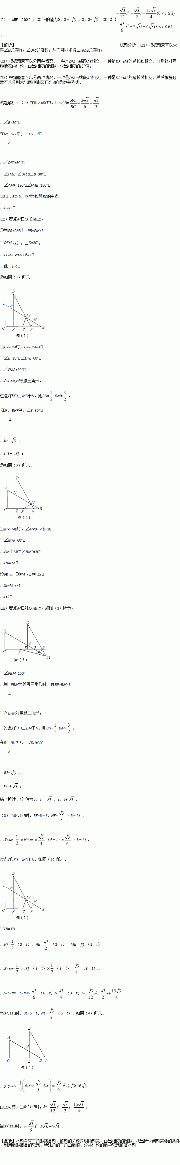 (3)若两个三角形重叠部分的面积为S,写出S与t的函数关系式和相应的自变量的取值范围.