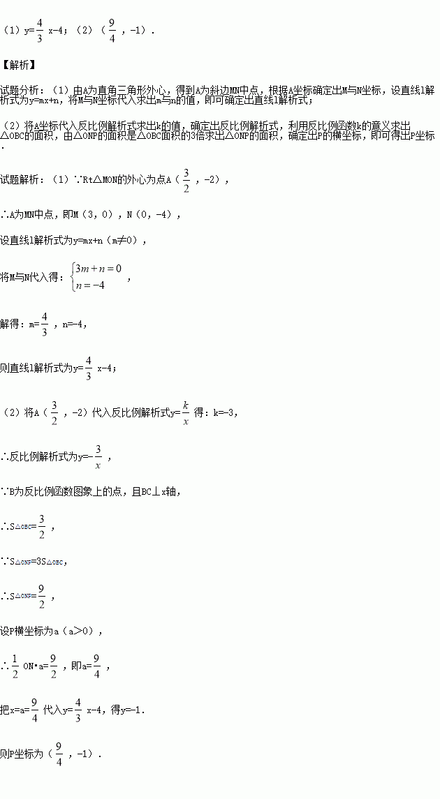(x>0)的图象上取异于点A的一点B,作BC⊥x轴于点C,连接OB交直线l于点P.若△ONP的面积是△OBC面积的3倍,求点P的坐标.