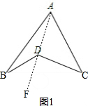 解答 解:(1)如图(1),连接AD并延长至点F,