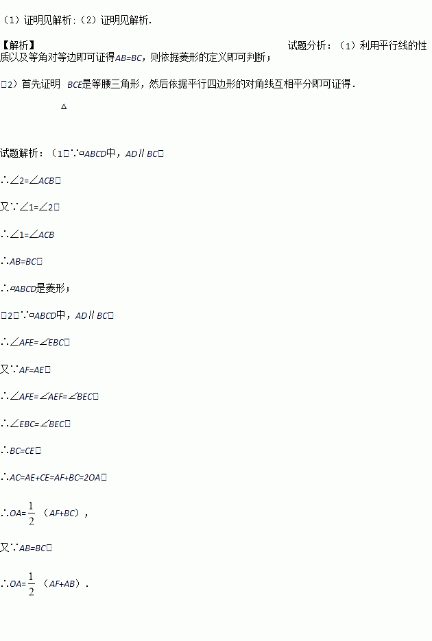 (2)F为AD上一点,连结BF交AC于E,且AE=AF.求证:AO=