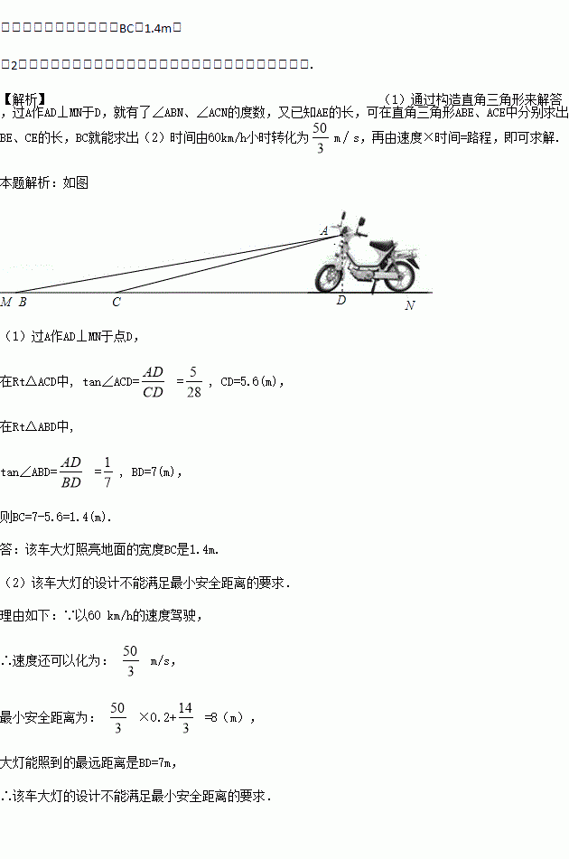 (1)该车大灯照亮地面的宽度BC约是多少(不考虑其它因素)?