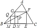 分析:(1)在∠ABC内任意作一个正方形MNPQ,使M,N在BC上,Q在AB上,