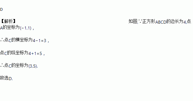 如图,正方形ABCD的边长为4,点A的坐标为(–1,1),AB平行于x轴,则点C的坐标为( )