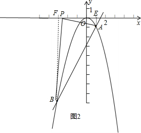 如图2,当∠PBA=90°时,过A作AE⊥x轴于E,过B作BF⊥x轴于F,![]()