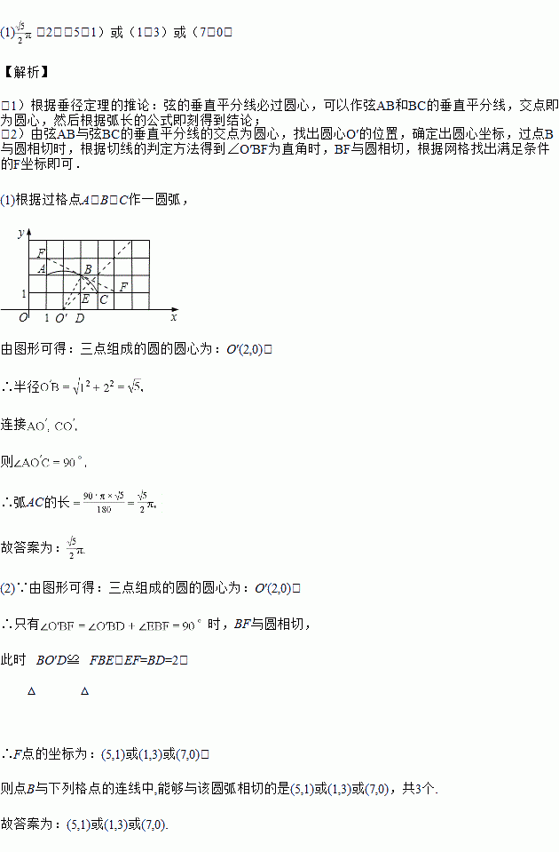 (2)点B与图中格点的连线中,能够与该圆弧相切的连线所对应的格点的坐标为_____.