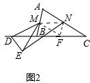 (2)连接MN、MF、NF,如图2,易证四边形MNCF是菱形,从而可得∠FMN=∠ACB.由∠DME=∠ACB可得∠DME=∠FMN,从而有∠DMF=∠EMN,进而可证到△DMF≌△EMN,则有DF=EN;