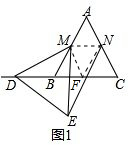 分析 (1)连接MN、MF、NF,如图1,易证△MNF是等边三角形,结合条件△MDE是等边三角形,即可证到△DMF≌△EMN,则有DF=EN;