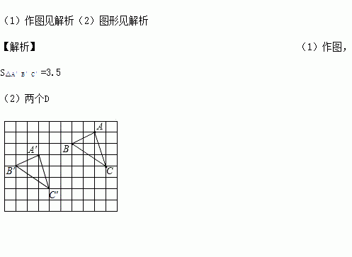 (2)在图中找出格点D,使△ACD的面积与△ABC的面积相等。