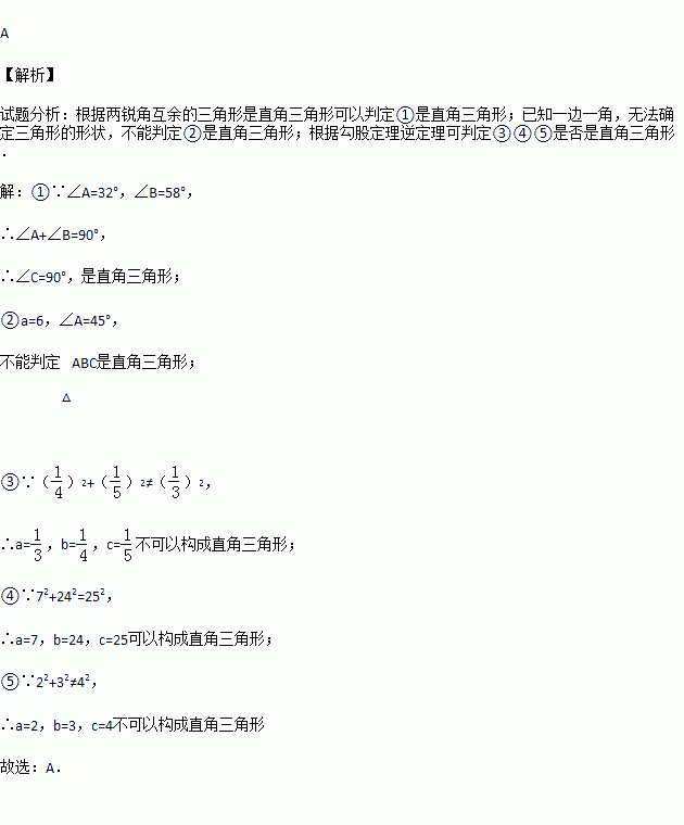 适合下列条件的△ABC中,直角三角形的个数为( )