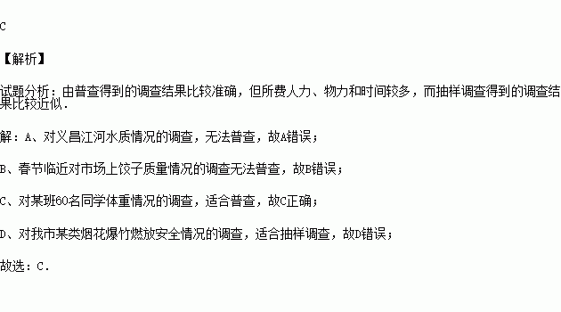 C.对某班60名同学体重情况的调查