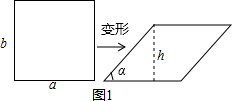 理由:如图1,设矩形的长和宽分别为a,b,变形后的平行四边形的高为h,∴S1=ab,S2=ah,sinα=$\frac{h}{b}$,