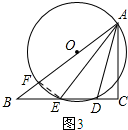 (3)如图3所示,连接EF.由直角所对的圆周等于90度可得到∠FEA=∠C,由圆内接四边形的性质可知∠AFE=∠ADE,根据三角形的内角和定理可知∠CAD=∠FAE.