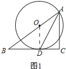 分析 (1)连接OD.由切线的性质可知:OD⊥BC,从而可得到DO∥AC,由平行线的性质可知∠ODA=∠DAC,然后由∠ODA=∠OAD可得到∠OAD=∠DAC,故此AD平分∠BAC;