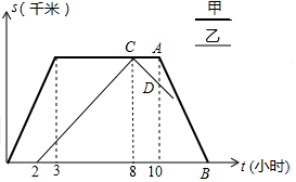 (3)先分别求出C、D两点的坐标,再求CD的解析式,求直线AB与CD的交点,即此时两车相遇,时间为12小时,计算甲车从第10小时开始返回,则再经过2小时两车相遇.
