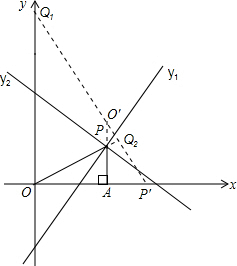 点评:此题考查了一次函数综合题,涉及了待定系数法求一次函数解析式及两函数图象的交点问题,难点在第三问,关键是找到点Q的两个位置,可根据OP'是直角边、OP'是斜边两个思路进行寻找.