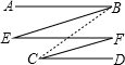 解答 解:平行.理由如下:连接BC,∵AB∥CD,∴∠ABC=∠BCD,∵∠ABE=∠DCF,∴∠EBC=∠BCF,∴BE∥CF.