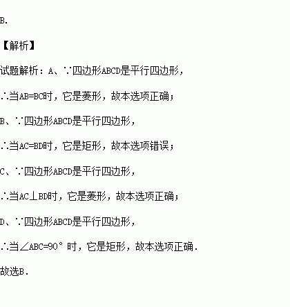 C.当AC⊥BD时,它是菱形 D.当∠ABC=90°时,它是矩形