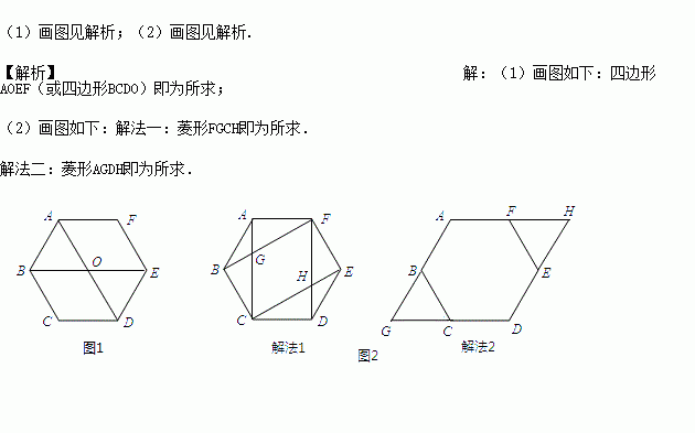 (1)在图1中,画出一个与正六边形的边长相等的菱形;