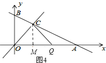 ②CO为腰时,C为顶点时,如图4,过C作CM⊥OA于M,![]()