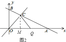 把C(2,2),Q(3,0)代入得:$\left\{\begin{array}{l}{3k+b=0}\\{2k+b=2}\end{array}\right.$,