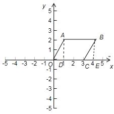分析:如图:首先过点A作AD⊥x轴,过点B作BE⊥x轴,由四边形OABC是平行四边形,可得AB=OC,AD=BE=2,可得OD=CE=1;所以可求得点B的坐标.