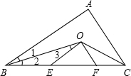 点评:本题考查了等腰三角形的判定与性质,角平分线的定义,平行线的性质,熟记定义与性质并求出△OEF的周长=BC是解题的关键.