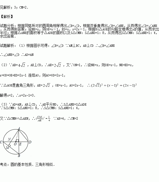 如图,⊙O中,直径CD⊥弦AB于E,AM⊥BC于M,交CD于N,连AD.