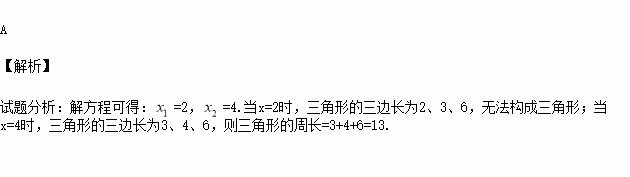已知三角形两边的长分别是3和6,第三边的长是方程x2-6x+8=0的根,则这个三角形的周长等于( )